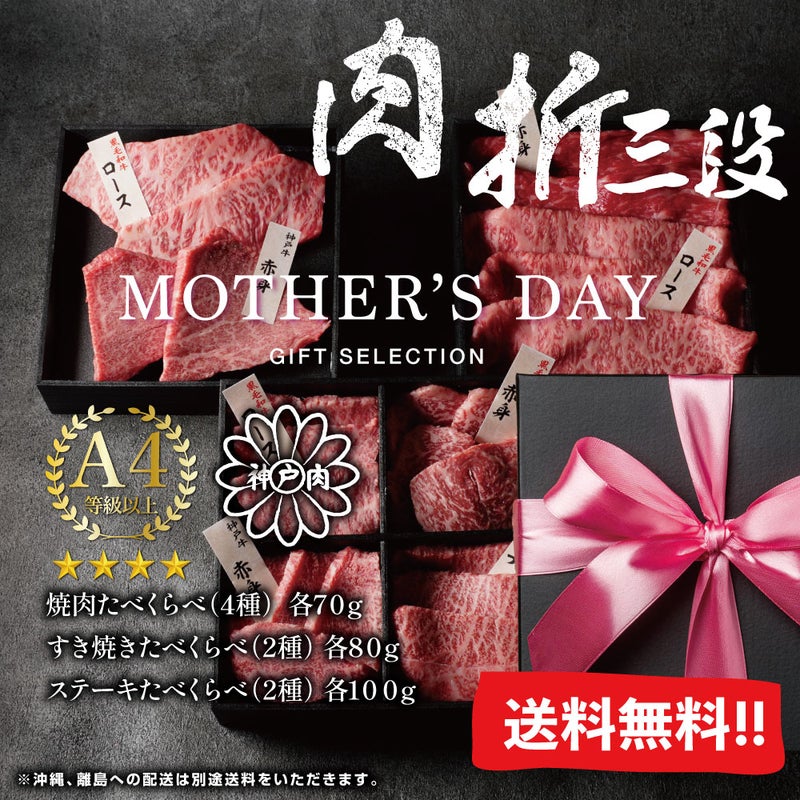 【送料無料】肉折三段(640g) 肉箱/肉ギフト/肉おせち/神戸牛/黒毛和牛/食べ比べ