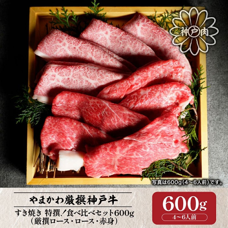 これ以上贅沢なファミリーすき焼きはありません。 【神戸牛】すき焼き 特撰!食べ比べセット(厳撰ロース・ロース・赤身)600g (4~6人前)